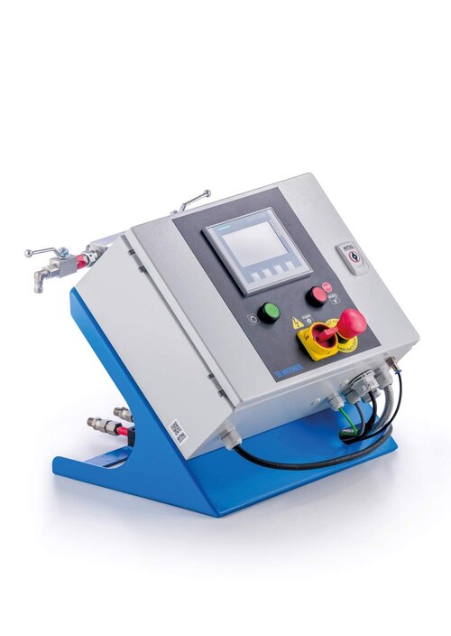 Die verabeiteten Materialien und die dazugehörigen Injektionsdrücke können Sie jederzeit auf Ihrem mobilen Endgerät im WLAN des Dataloggers einsehen. Zusätzlich überwacht die Anlage das Mischungsverhältnis und warnt bei Unregelmäßigkeiten, z.B. durch leere Gebinde. Die Steuerung signalisiert optional, wenn die maximale Injektionsmenge oder der maximale Injektionsdruck pro Bohrloch erreicht wurde. Bedienung am 4“ Display direkt am Schaltschrank und mit jedem Endgerät mit WLAN-Funktion und Internetbrowser. Druck am Mischer, Ist-Menge Packer und Temperatur (optional) werden im Display und mobilen Endgerät angezeigt.